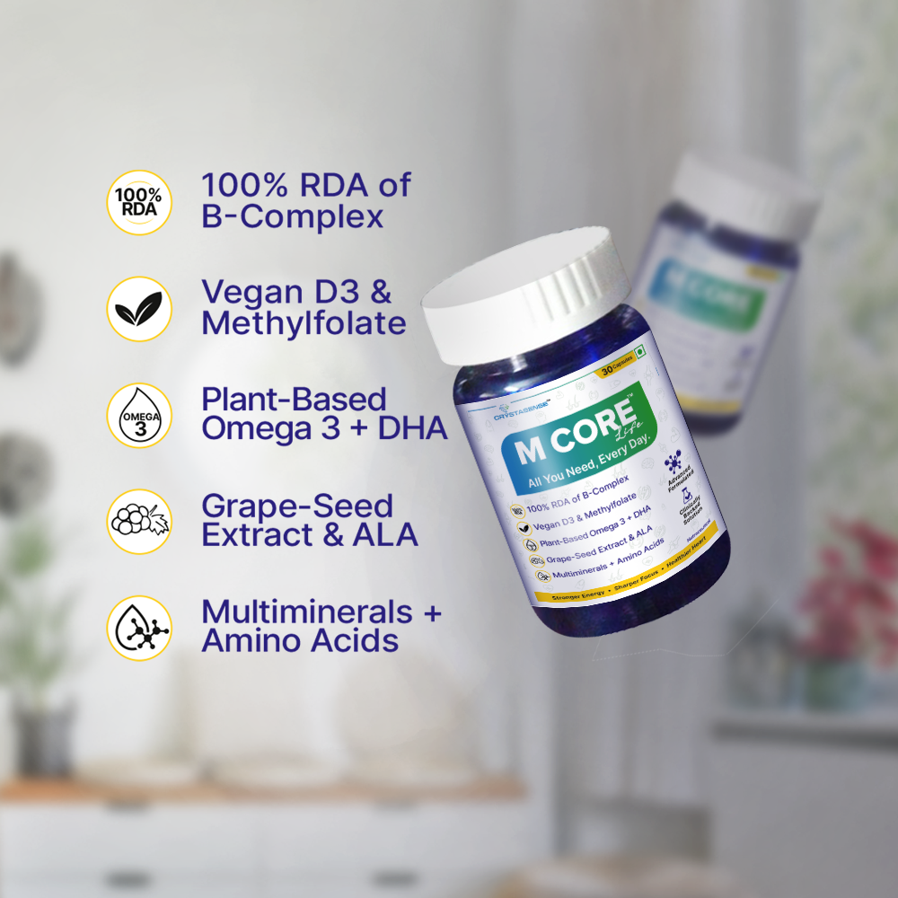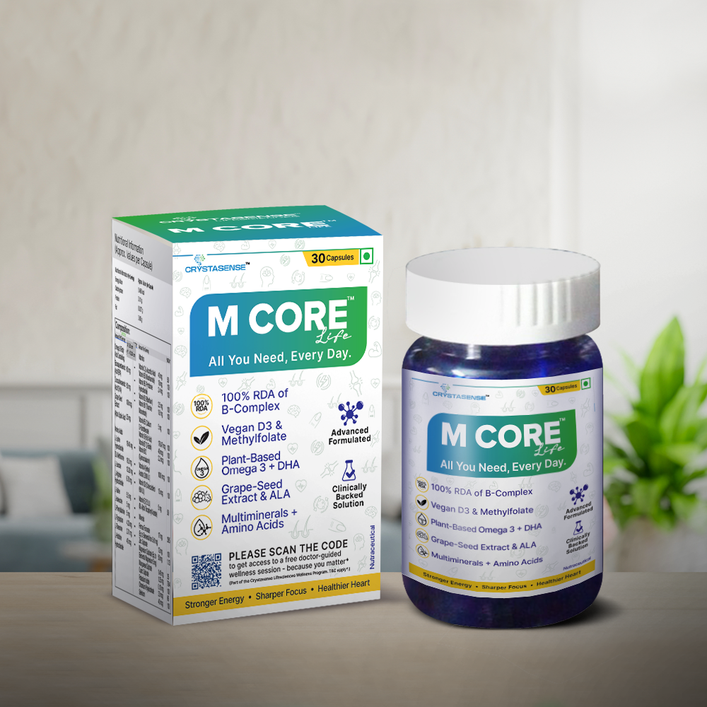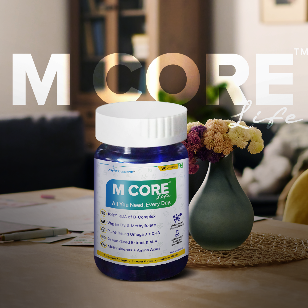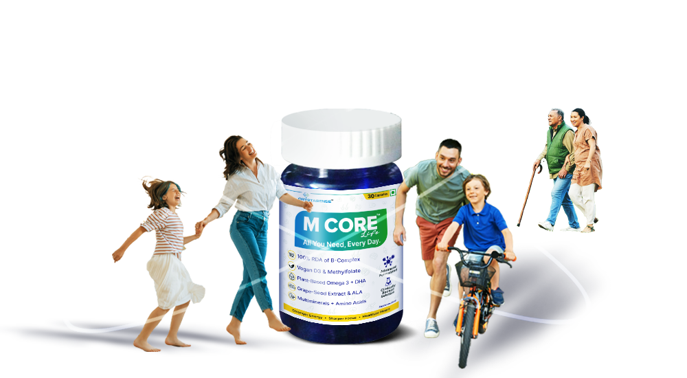 MCore is a comprehensive daily supplement designed to combat the most common nutritional deficiencies in the Indian population. It was created to bridge dietary gaps with clinically supported nutrients at effective doses, and is specifically tailored for Indian lifestyles and diets.