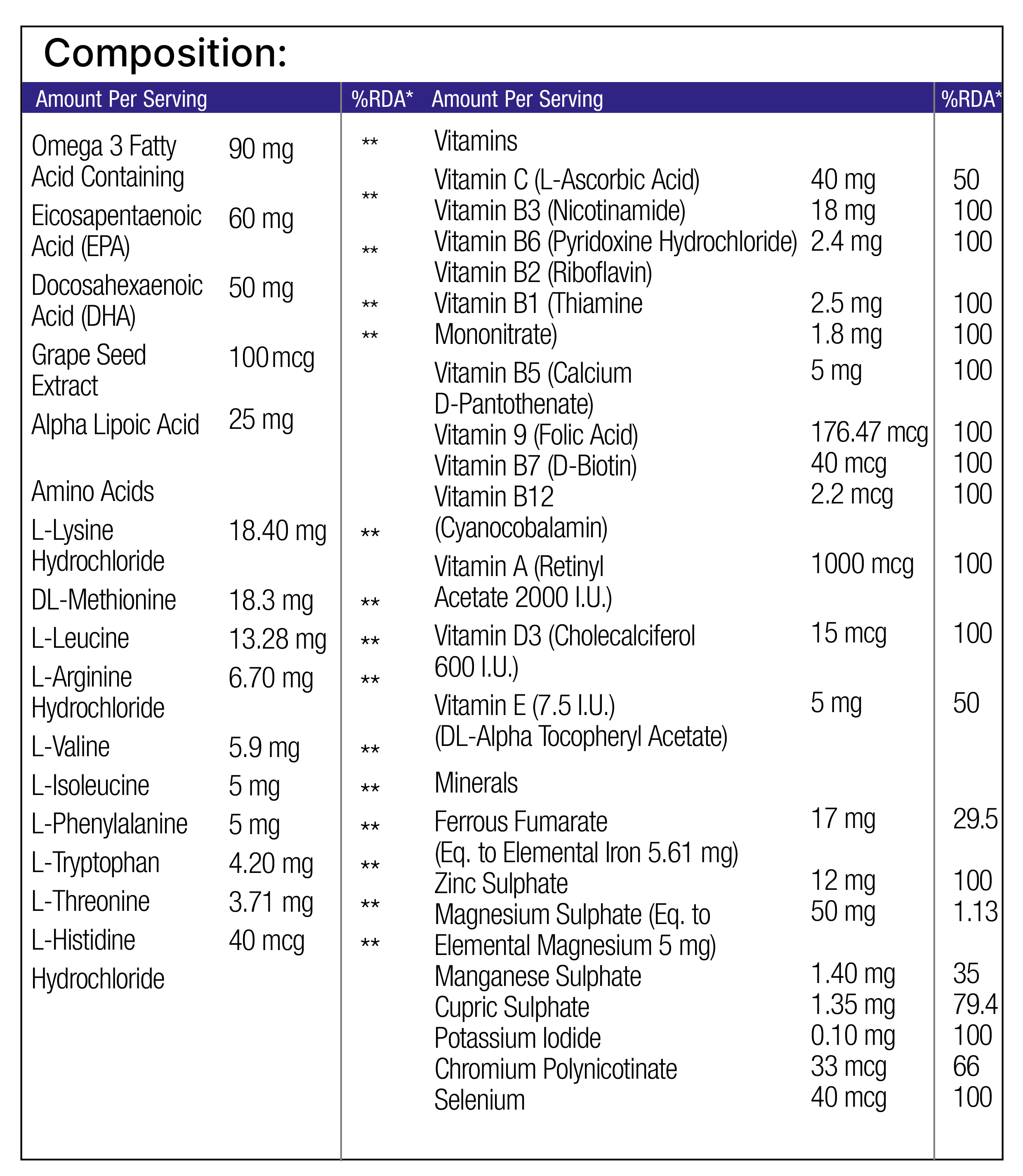 - Nutritional Gap Closure: Designed to correct and prevent common deficiencies in Vitamins D3, B12, B6, Iron, Zinc, and Omega-3 Fatty Acids.